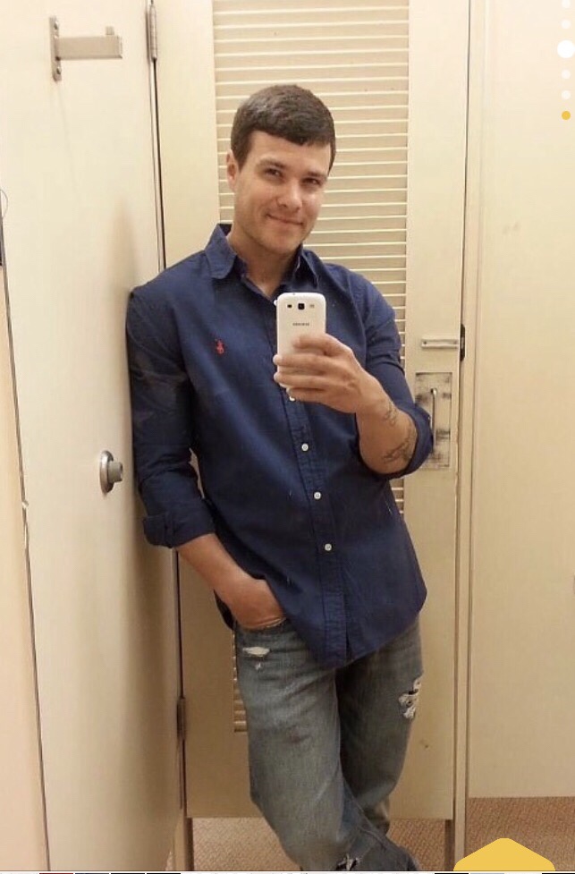 He appears to be in a public restroom… being witty and awesome and alone.