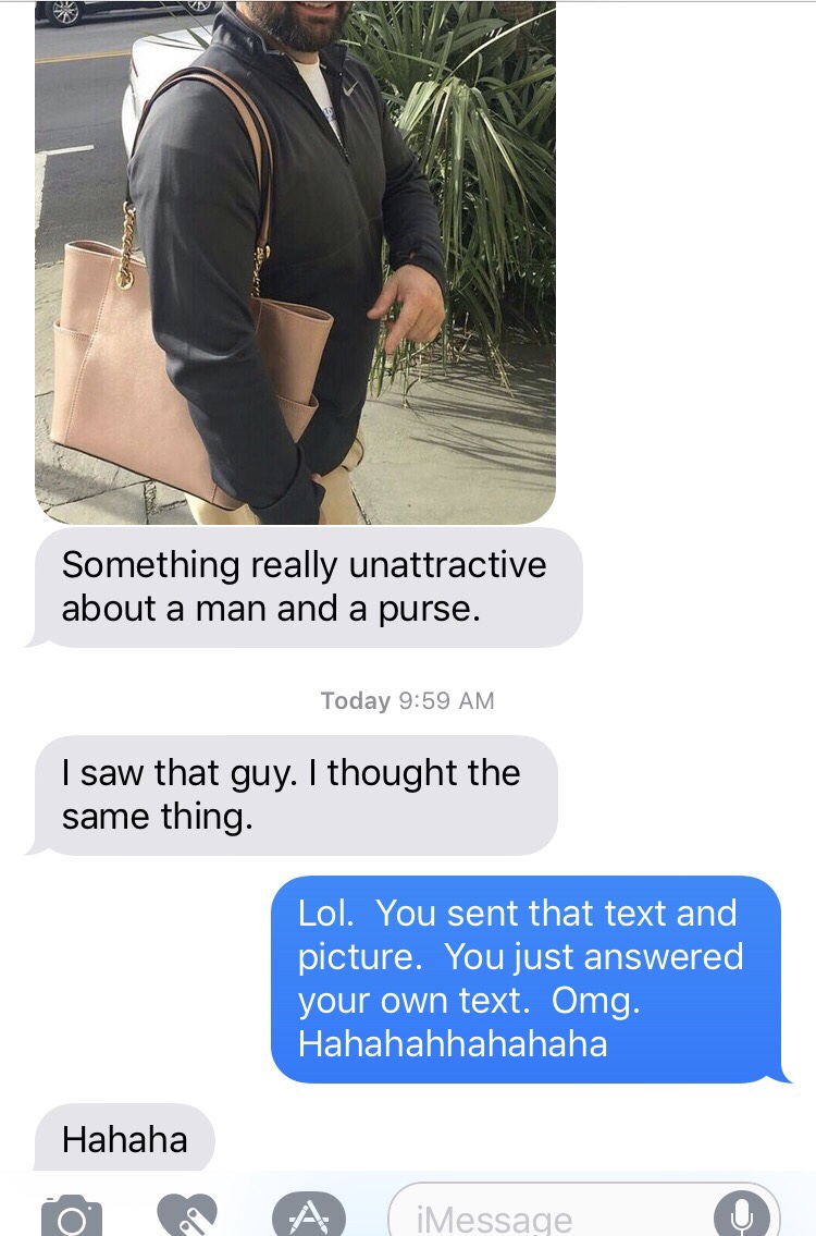 A fellow bumbler who also appreciates a ridiculous picture sent me this text and picture at 1:08 AM. She then proceeded to answer herself at 9:59 AM. And I can’t stop laughing.