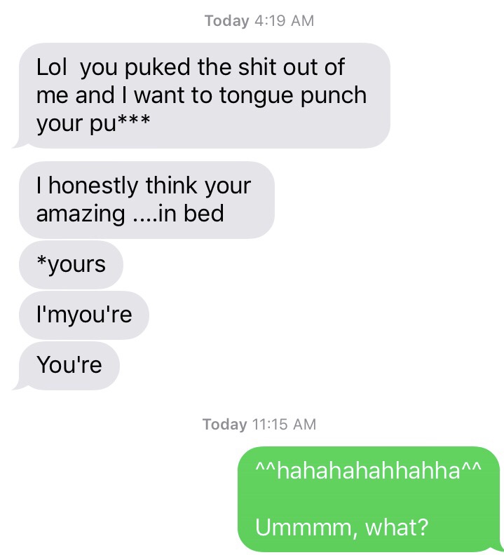 A fellow bumbler shared this awesome text she woke up to this morning. Props to that guy for really hanging in there to correct 2 your/you’re mistakes.