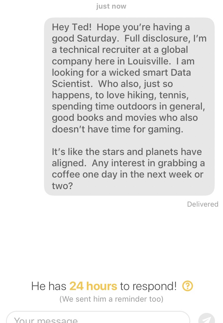 Coffee is for closers… bumblestumble2018 Profiles January 27, 2018 1 Minute Recruiting and bumbling. If this doesn’t get me a Data Scientist and a coffee, I will be super disappointed. Share this: Click to share on X (Opens in new window) X Click to share on Facebook (Opens in new window) Facebook Like Loading... Published by bumblestumble2018 The last time that I dated, I had an indestructible Nextel phone and an AOL email account. View all posts by bumblestumble2018 Published January 27, 2018